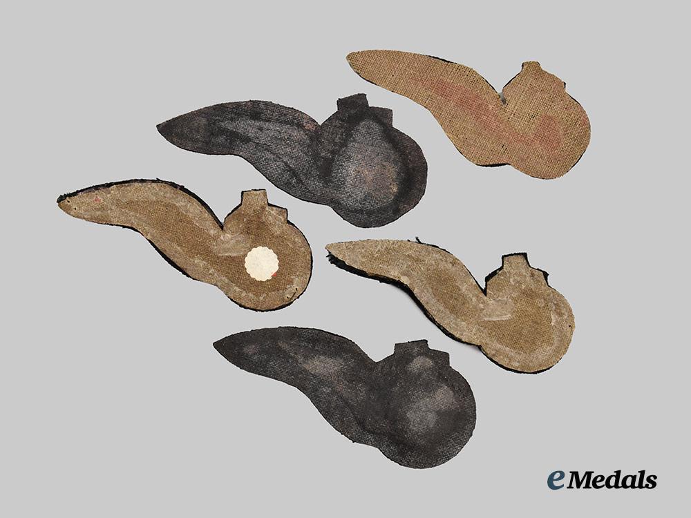 A lot of five very well preserved Royal Canadian Air Force Trade/Occupational Half-Wings, some with glue remnants on the reverse from previous collector mounting, in overall very fine to near extremely fine condition.