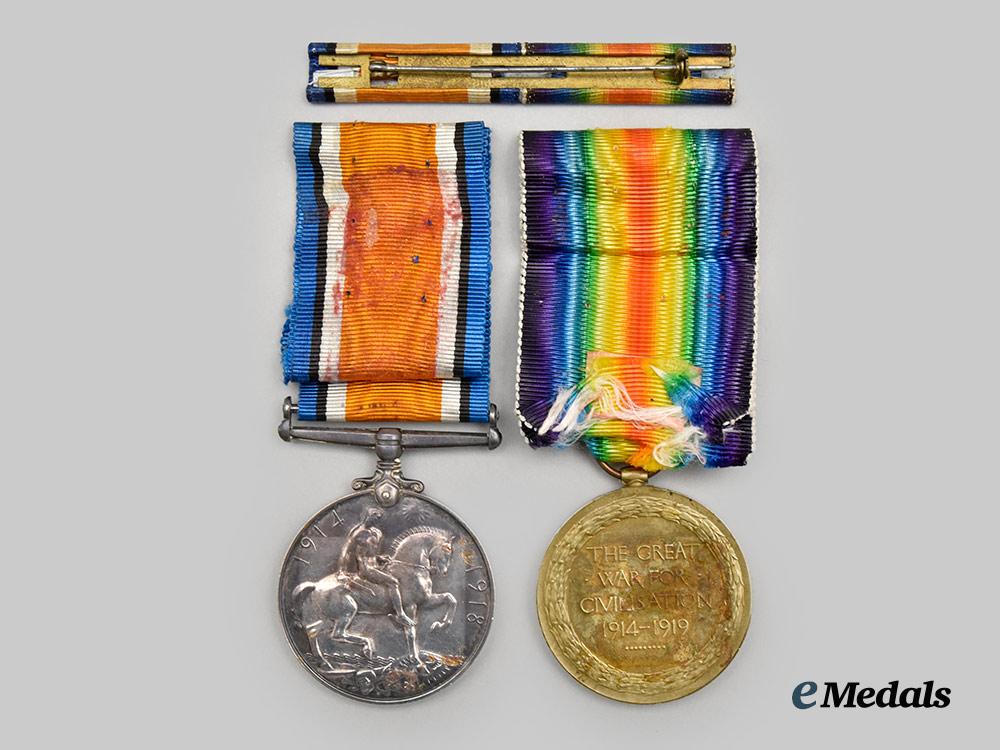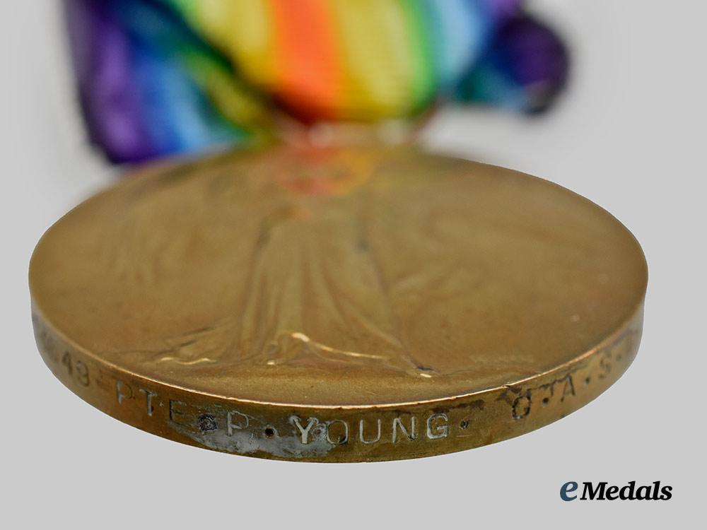 A dual First War medal grouping to Private Peter Young (113649) of the Canadian Army Service Corps, consisting of: