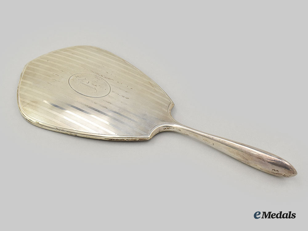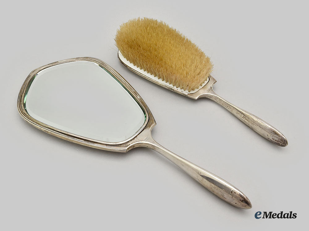 Canada, Commonwealth. A Monogrammed Vanity Set Of Mirror And Handheld Brush, By Birks