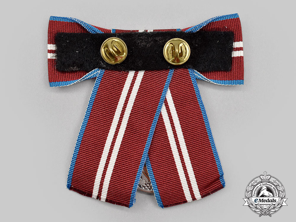 Instituted 2012. In nickel silver, a full size jubilee medal presenting Queen Victoria on the obverse, with the crowned cypher on the reverse, worn on original bow ribbon for ladies with two pinch pins on the reverse reinforced by felt, rim marked R, in near mint condition.