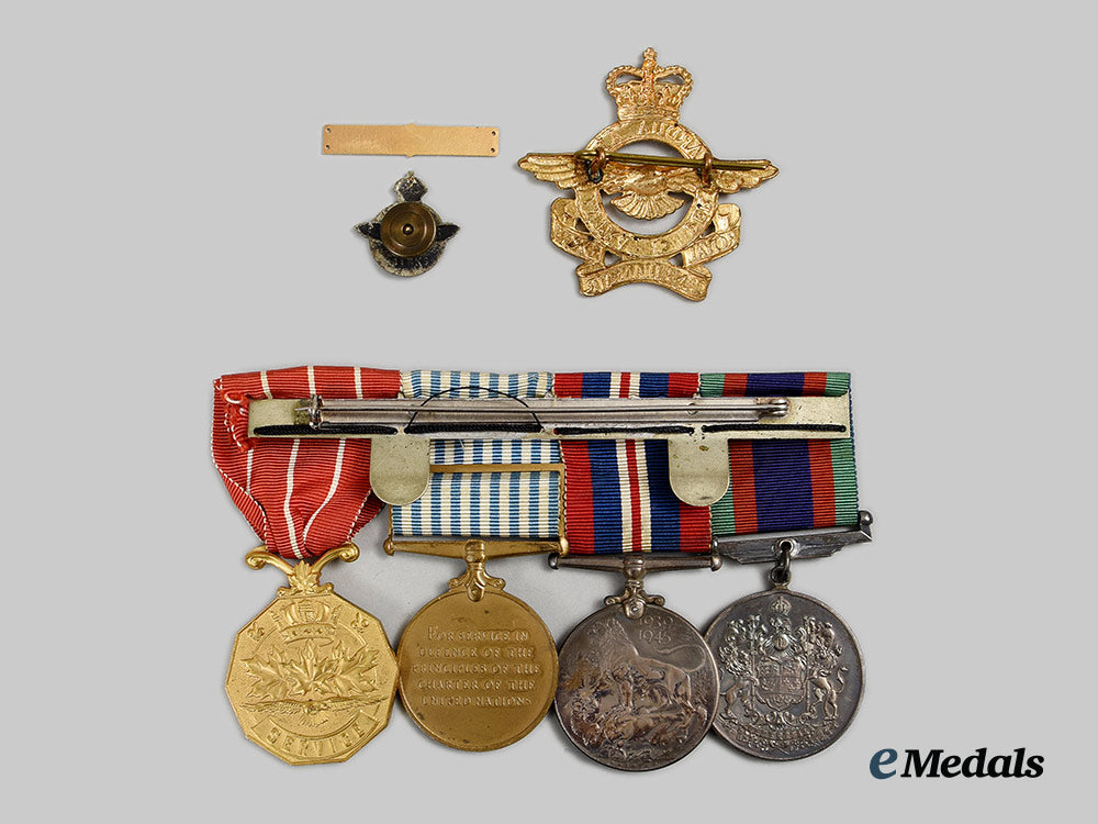 Accompanied by an RCAF Cap Badge, in bronze gilt, two lugs and pin on reverse, light wear in very fine condition.