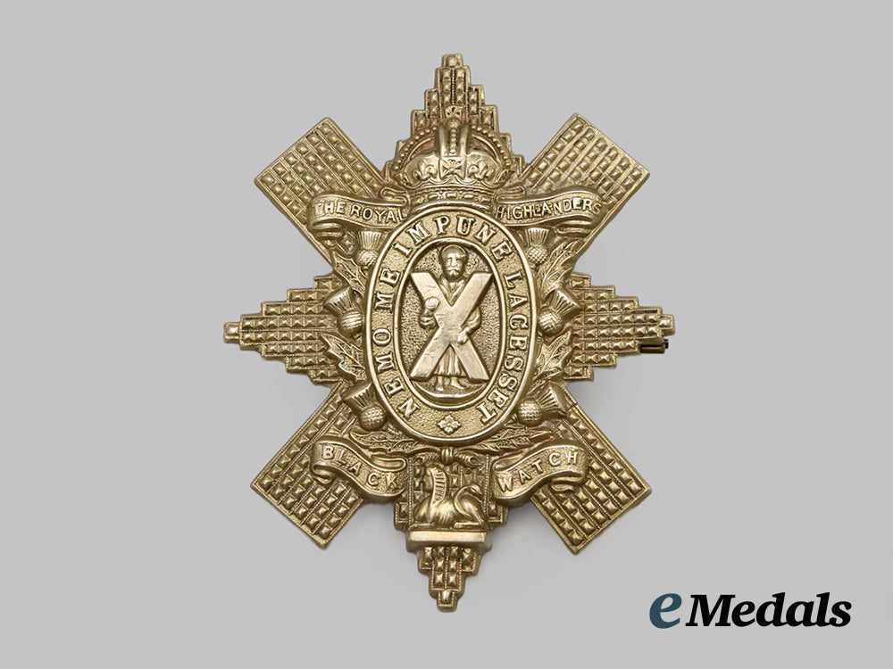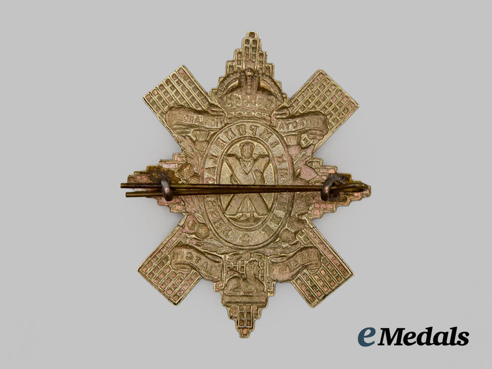 2. Black Watch (Royal Highlanders of Canada) Glengarry Badge: in white metal, measuring 57.8 mm (w) x 72.3 mm (h), both lugs and pin intact.