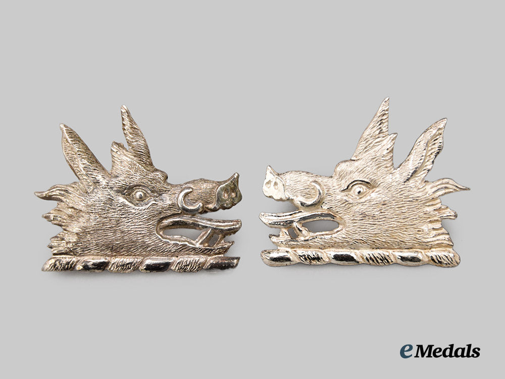 Canada, Commonwealth. A Silver Lorne Rifles (Scottish) Officer's Collar Badge Pair