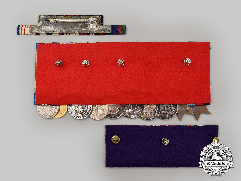 10. Queen Elizabeth II Diamond Jubilee Medal 1952-2012: in nickel-silver, measuring 32 mm in diameter. Court-mounted, with four push pins on the reverse, the five Second War medals with replacement ribbons, the five commemorative medals with original ribbons.