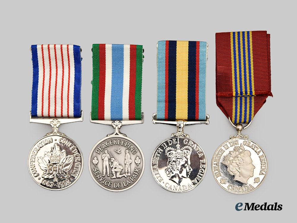 A lot of four Canadian Commonwealth service medals, consisting of: (Peacekeeping, Confederation, Volunteer Service Medal, Gulf & Kuwait Medal)