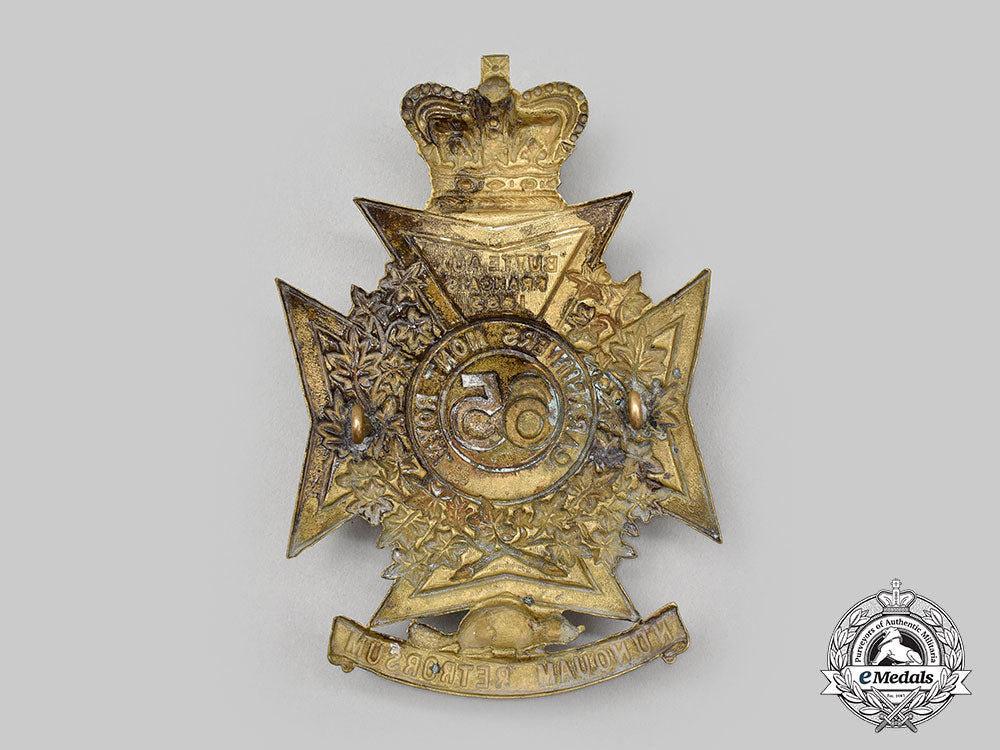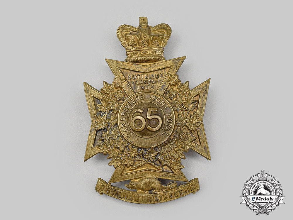 Canada, Dominion. A 65Th Regiment, Carabiniers Mont-Royal (Mount Royal Rifles) Helmet Plate With Queen's Crown, C.1889