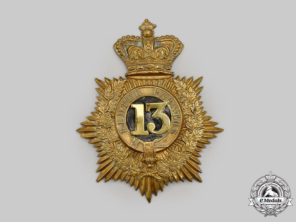 Canada, Dominion. An Early 13Th Regiment Militia Helmet Plate, C.1855