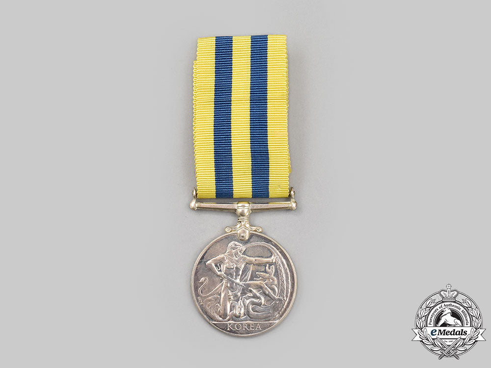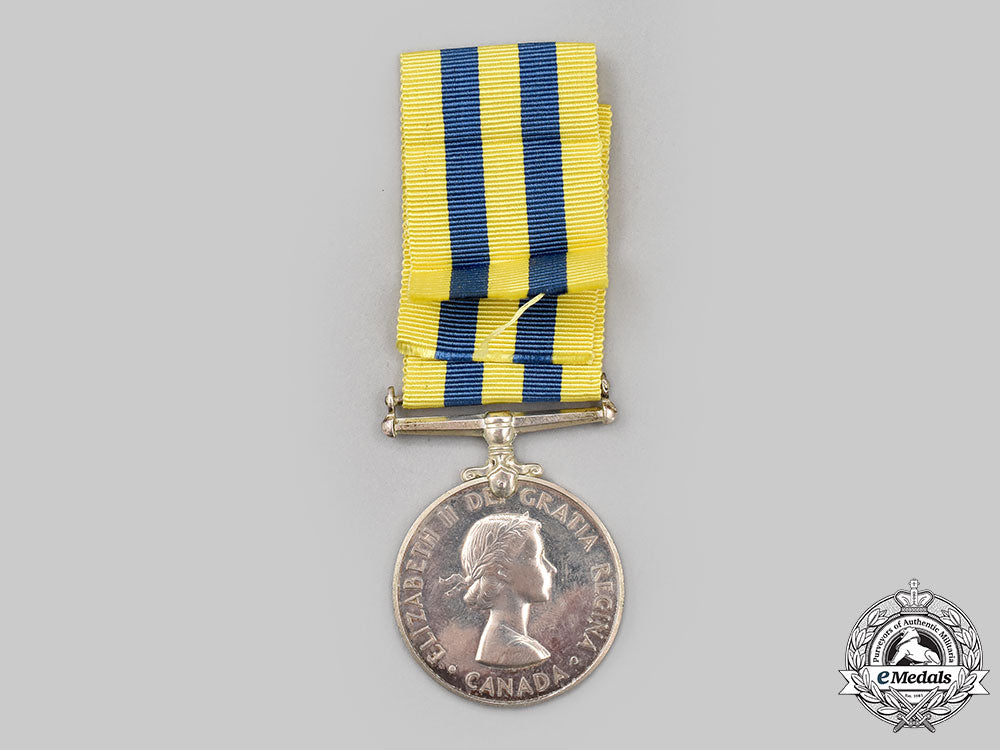 Footnote: The Canadian Korea Medal was instituted in 1951 for service from July 2, 1950 to July 27, 1953. It was awarded to Canadian military personnel for one day on the strength of an army unit in Korea, or 28 days afloat, or one sortie over Korea by a member of the RCAF.