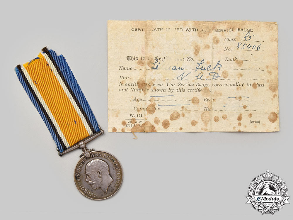 Canada, United Kingdom. A First War British War Medal To A Female Nurse's Aid, Lillian Hirst Luck, Voluntary Aid Detachment