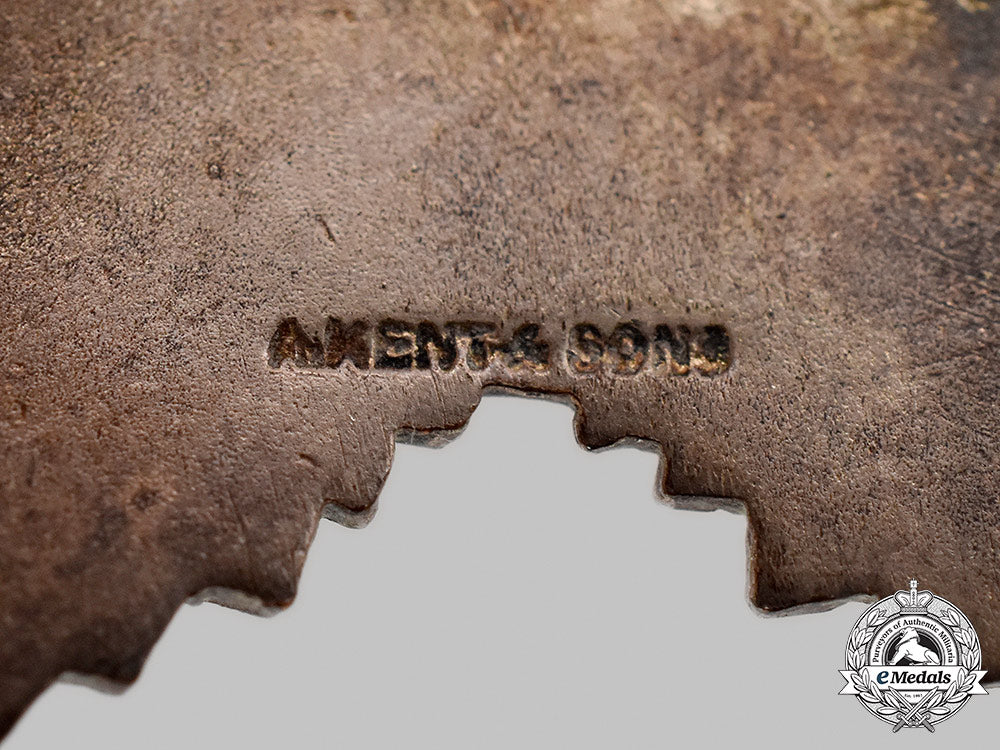 2. Royal Society of St. George Badge (in silver, measuring 33.5 mm (w) x 42.5 mm (h) inclusive of its integral suspension, lightly soiled original ribbon, suspended from an ornate hanger with pinback).