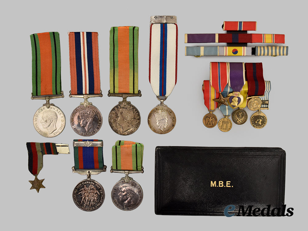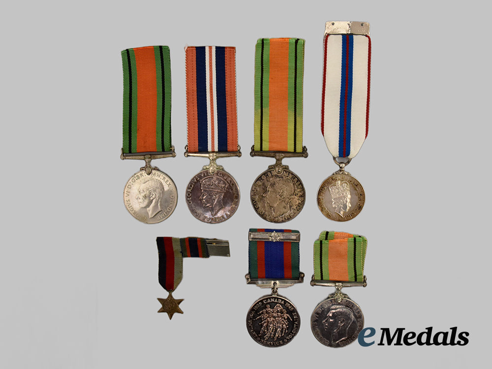 3. plus five loose Ribbons (two 1914-15 Star, one Victory Medal, one War Medal 1939-1945, one Canadian Volunteer Service Medal.