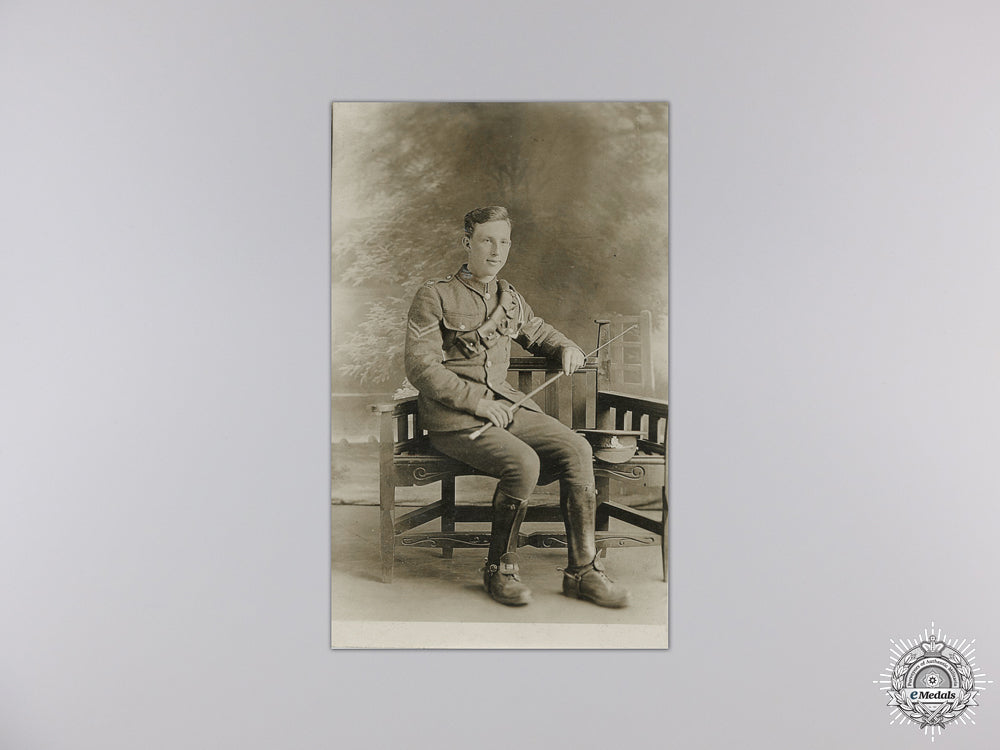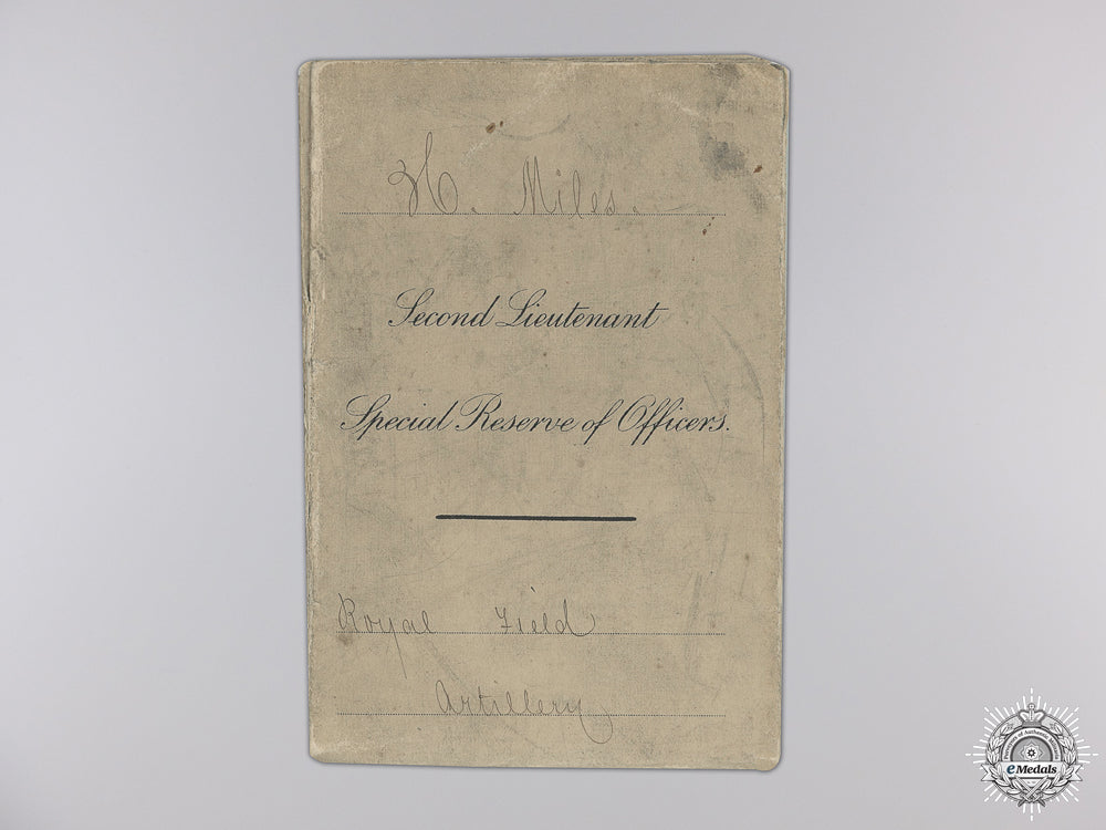 Footnote: Henry Miles was born on May 4, 1894 in St. Mary's, Chesterfield, Derbyshire, England, the son of George Miles and Fanny Miles of Chesterfield. He was educated at Hipper Street School in Chesterfield and was described by the Archdeacon of Chesterfield as the "son of well-to-do, highly respected people" and that he had "always been a leader from childhood." Henry Miles signed his Attestation Paper with the Royal Regiment of Artillery (Royal Horse & Royal Field Artillery) (33300) on August 29, 1914 at Chesterfield, at the age of 20, stating that he had no previous military service, that he was not married and that his trade was that of (Engineering) Clerk. He was posted as a Gunner with the 166th Battery, Royal Field Artillery on September 5, 1914. He was admonished on October 27, 1914, for being absent from 6:00 pm on October 26th to 12:10 am on October 27th at Aldershot, followed by a posting in the new year to 'D' Battery, 32nd Brigade on January 18, 1915. It was here that he was promoted to Bombardier on February 6, 1915 and to Corporal on March 18, 1915. Two months after his second promotion, he entered the French theatre for the first time, embarking Southampton on May 12, 1915, disembarking in Le Havre the next day. He was wounded in action, suffering a gun shot wound to his left leg, on September 25, 1915 and invalided to England aboard the Hospital Ship St. George on October 2nd. Upon arrival, he was transferred to the 5th Reserve Brigade RFA on October 3rd, followed by his admission to the Royal Infirmary at Edinburgh, from October 3rd to December 24th. It was noted by the physician that the "wound (was) received while (the) patient was telephoning" and that it was a "deep septic wound just above knee joint". It was for actions the day that he was wounded, that Corporal Henry Miles, 5C Reserve Brigade RFA (formerly 'D' Battery, 52nd Brigade), was awarded the Distinguished Conduct Medal, as mentioned in the Fourth Supplement to the London Gazette 29438 of Tuesday, January 11, 1916, on Friday, January 14, 1916, page 606: "For conspicuous gallantry, Corporal Miles was in charge of the telephonists, and he continued to work his instrument, although severely wounded in the leg, and when sent back to the dressing station, he carried out, with great bravery and determination, repairs to the wire under heavy fire." He was posted to No. 16 D.W. Artillery on January 15, 1916, to No. 5 Depot RFA at Athlone on September 15, 1916 and at Curragh Camp on March 23, 1917. Henry Miles was accepted for admission to No. 1 Royal Artillery Officer Cadet School at St. John's Wood, N.W. on June 7, 1917, receiving a commission and appointed to the Special Reserve of Officers on November 3, 1917. He returned to the French theatre a second time, disembarking at Boulogne on January 25, 1918 and placed with No. 2 Divisional Ammunition Column on the 31st. He briefly returned to the United Kingdom on September 25, 1918, before re-entering France on a third occasion. 2nd Lieutenant Henry Miles suffered an injury to his left knee, while playing right back in a football (soccer) match, for No. 3 Section team of the 20th Divisional Ammunition Column, against a team composed of players from 'A' Battery, 91st Brigade RFA, at Warlincourt, Saulty, Pas-de-Calais, France, on January 8, 1919. The official report states that "This officer was playing in an organized game of football for the 20th Div. R.A. League. He made a run for the ball, and kicked, and then felt his knee give way. He was carried from the field and the doctor was called." The incident was ruled an "accident in a properly constituted game of football and no one was to blame.", with many eyewitness reports lending support, to confirm that it was an accident. He was subsequently sent to Le Havre for invaliding to England on January 22nd, arriving in Southampton the next day. It was noted here that he had an "internal derangement of the knee" and was "supplied with an Elastic Knee Cap at the Government's expense" on March 19th. By the summer and with hostilities having ceased, he was posted to 4/A Reserve Brigade RFA at Woolwich on June 6, 1919 and demobilized at No. 1 Dispersal Unit in Ripon, on June 16th. For his First World War service, Lieutenant Henry Miles was awarded the 1914-15 Star, the British War Medal and the Victory Medal. He relinquished his commission in the Special Reserve of Officers on April 1, 1920, retaining the rank of Lieutenant, as mentioned in the Third Supplement to the London Gazette 32136 of Tuesday, November 23, 1920, on Wednesday, November 24, 1920, page 11579. His older brother, Charles Miles was born on March 24, 1882 in Chesterfield, Derbyshire, England. Charles fought with the British forces during the South African (Boer) War. He later immigrated to Canada and was a resident of Edmonton, Alberta, when he signed his Attestation Paper with the 49th Infantry Battalion (432037) on January 4, 1915 at Edmonton, at the age of 32, naming his next-of-kin as his wife, Mabel Miles of Edmonton, stating that he was Married and that his trade was that of Steamfitter. The Battalion was raised in Edmonton, Alberta under the authority of G.O. 86, July 1, 1915. The mobilization headquarters was also at Edmonton. The Battalion sailed June 4, 1915 with a strength of 36 officers and 996 other ranks under the command of Lieutenant-Colonel W.A. Greisbach. The Battalion served in France and Belgium with the 7th Infantry Brigade, 3rd Canadian Division. Company Sergeant-Major Charles Miles was awarded a Distinguished Conduct Medal, as mentioned in the Supplement to the London Gazette 29637 of Friday, June 23, 1916, on Saturday, June 24, 1916, page 6303, his citation reading "For conspicuous gallantry. During a heavy bombardment by the enemy he moved from place to place over the open under heavy fire, directing and encouraging his men, evacuating the wounded and rescuing buried men. He has frequently been brought to notice for bravery." He 