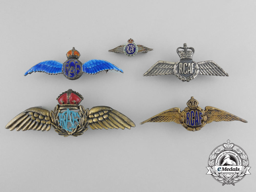Five Royal Canadian Air Force (Rcaf) Sweetheart Wings Badges