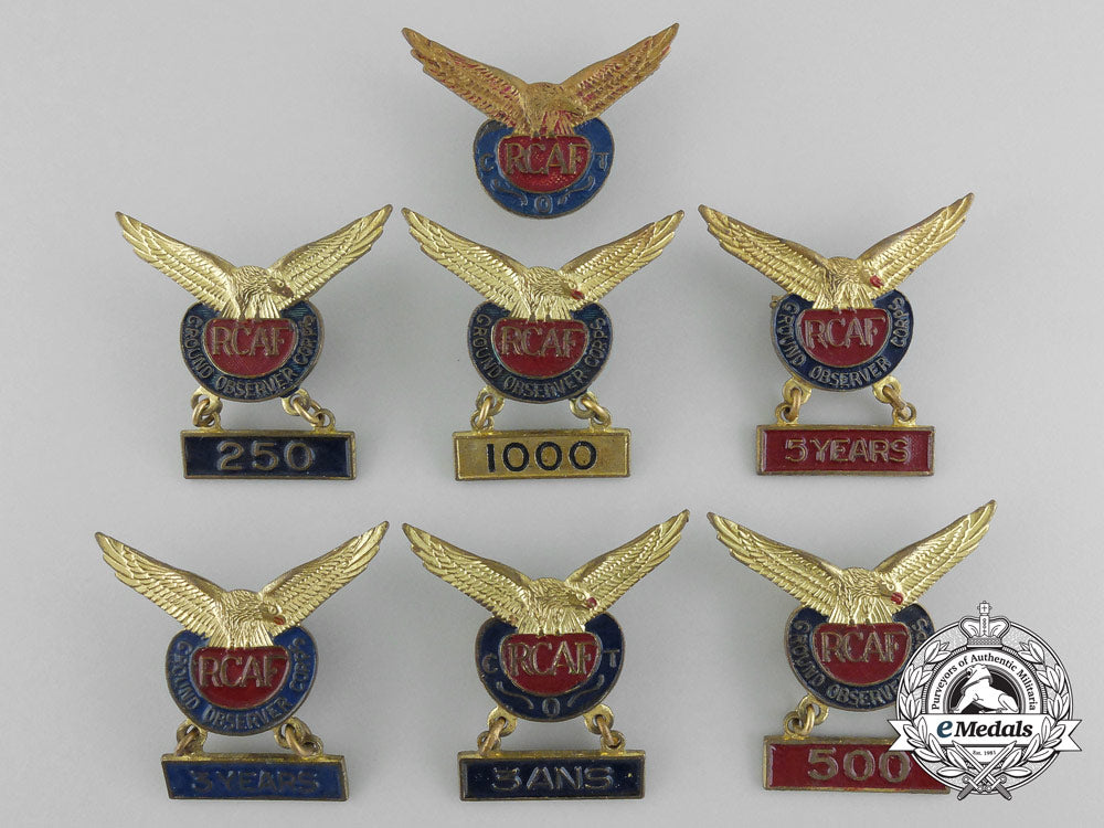 Seven Royal Canadian Air Force (Rcaf) Ground Observer Corps Lapel Badges