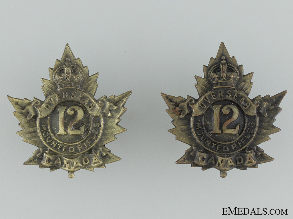 Wwi 12Th Mounted Rifle Battalion Collar Badge Pair