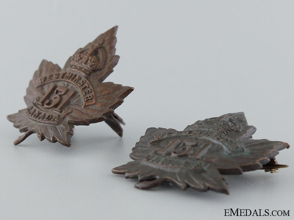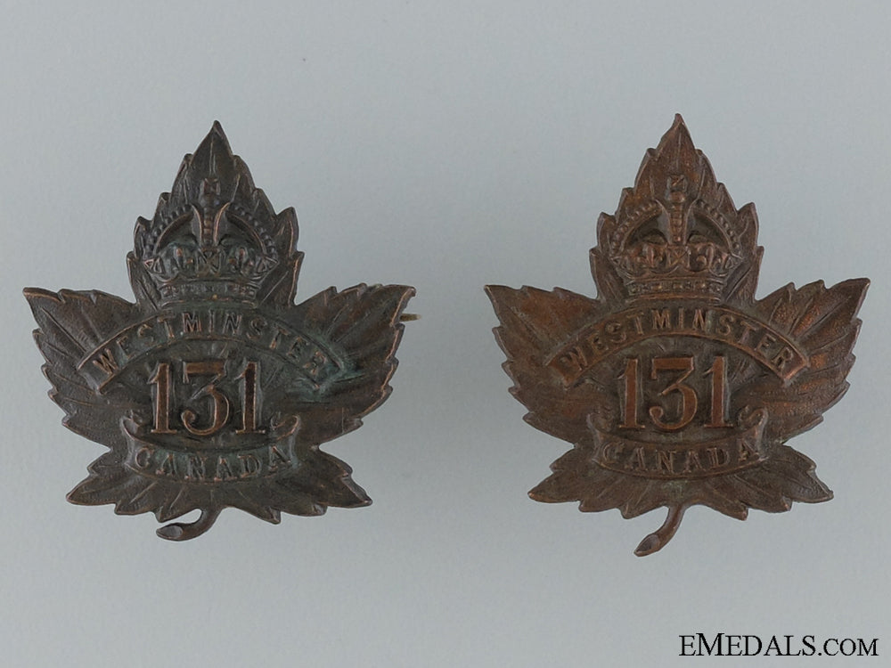 Wwi 131St Infantry Battalion "Westminster Battalion" Collar Pair