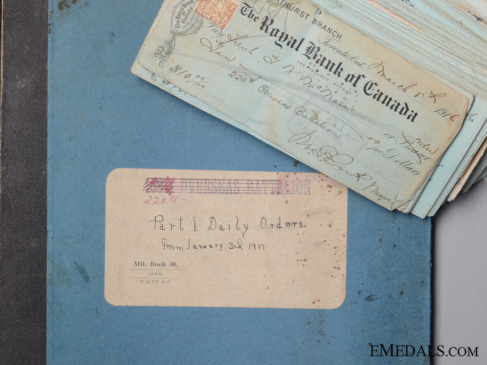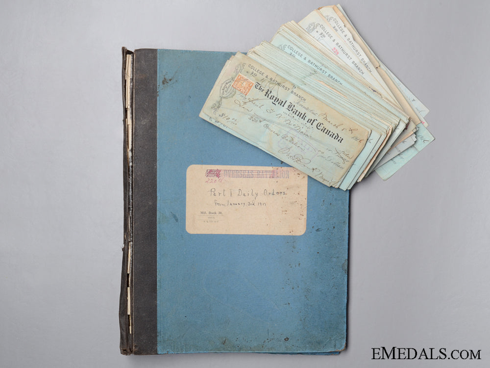 Wwi 220Th Battalion Daily Orders Book And Cancelled Cheques