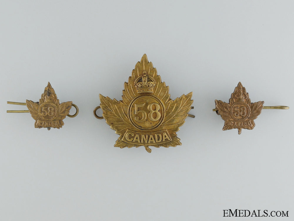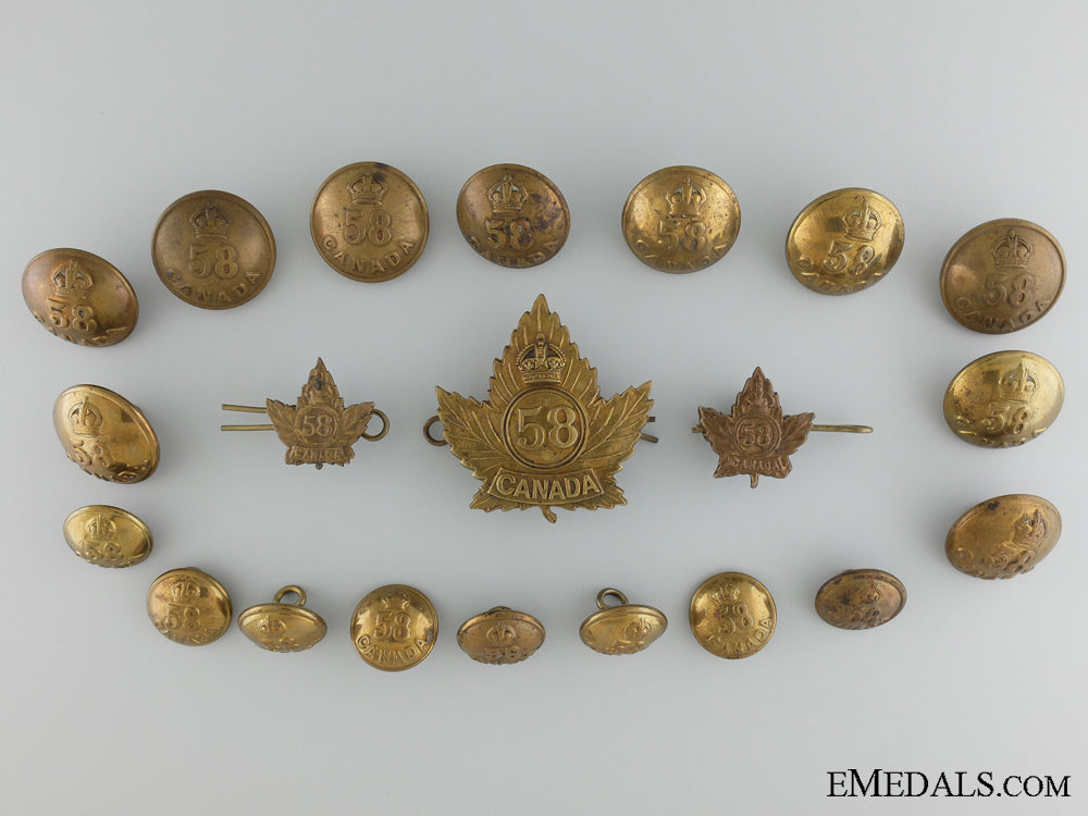 Wwi 58Th Infantry Battalion Officer's Cap Badge, Collar Tabs And Buttons