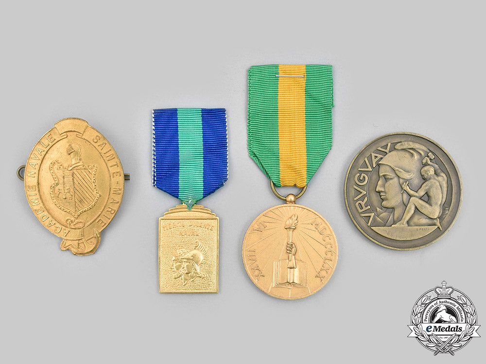 3. Uruguay, Oriental Republic: Ministry of Public Education Art Exhibition Table Medal 1942 (in bronze gilt, engraver marked "E PRATI" on the obverse, measuring 50 mm in diameter);
