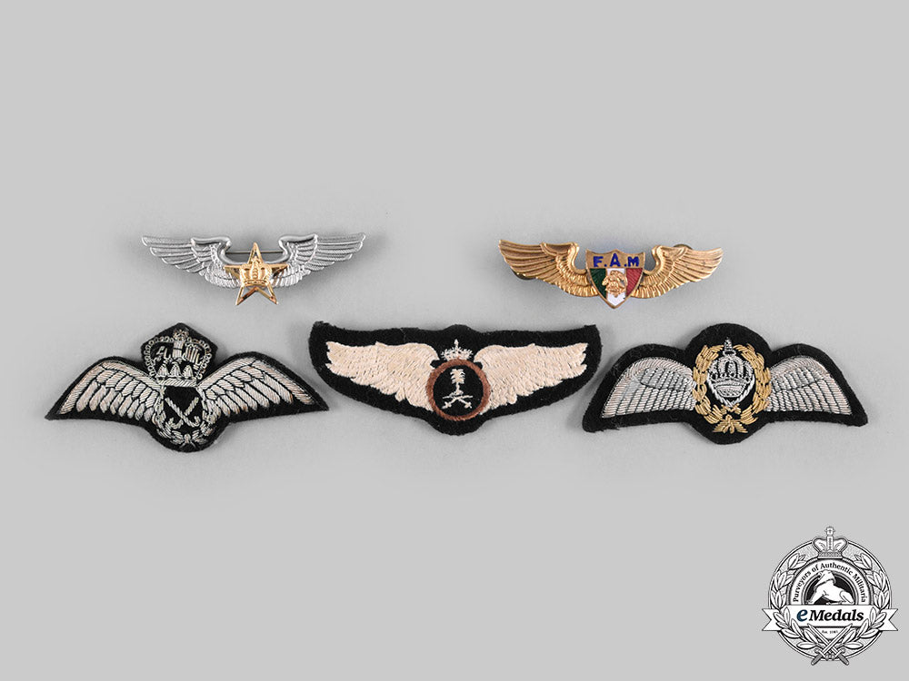 Jordan, Malaysia, Mexico, Morocco, Saudi Arabia. Lot Of Five Air Force Pilot Badges