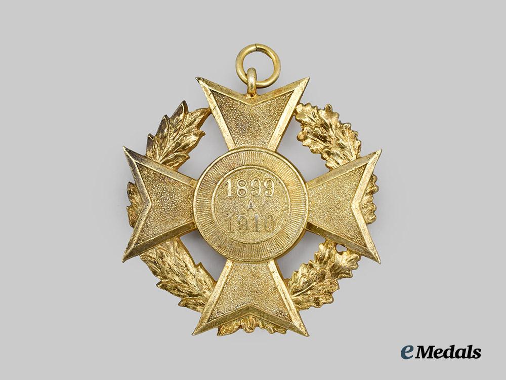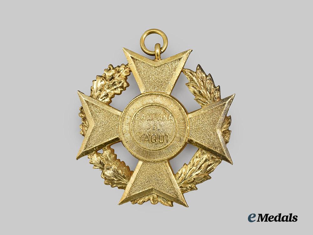 (Cruz por la Campaña del Yaqui). Instituted 1910. In bronze gilt, a Maltese cross with pebbled arms, laurel and oak leaf segments in each quadrant, theo obverse medallion featuring the inscription CAMPANE DEL YAQUI, the reverse medallions bearing 1899 A 1910, measures 36mm (w) x 37.1 mm (h - inclusive of integral suspension ring), light gilt wear, remains in extremely fine condition.