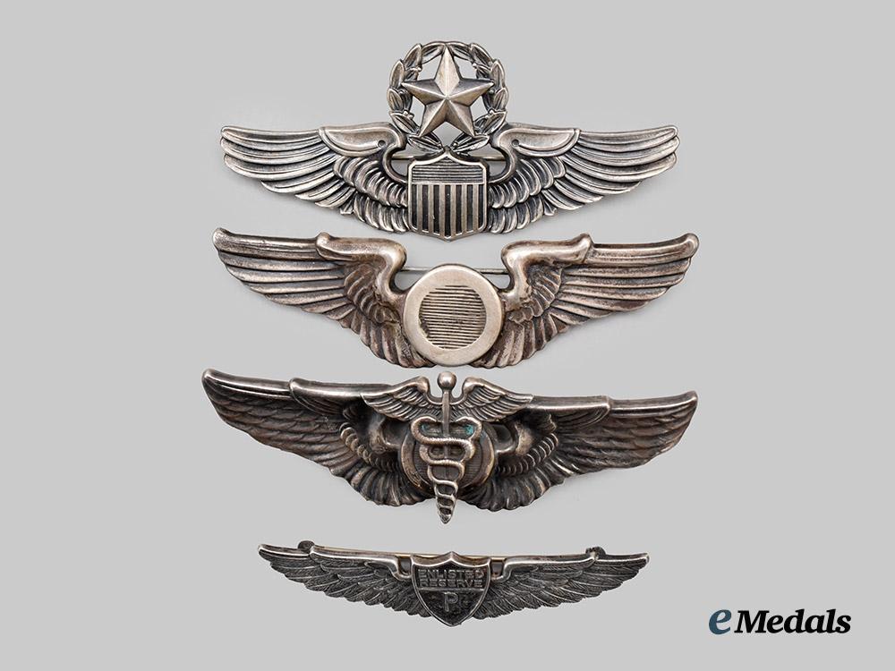 An Armed Forces Flight Surgeon Basic Wings, in silver, central cadecues, reverse marked STERLING, horizontal pin, measures 81.3 mm (w) x 25.9 mm (h), residue around the center of cadecues, light wear, in very fine condition.