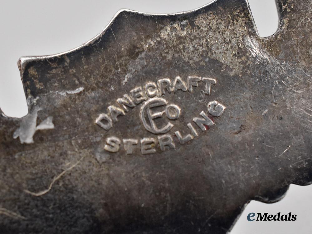 An Enlisted Reserve CPT Wing, in sterling silver, a pair of wings featuring a central shield inscribed ENLISTED RESERVE P as the C and T have been filed down, reverse marked DANECRAFT STERLING with a horizontal swing pin, measures 63.7 mm (w) x 14.5 mm (h), in fine condition.