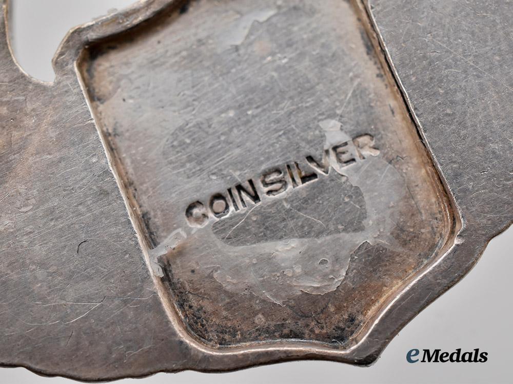In silver, a Glider Pilot denoted by the G on the central shield, reverse marked COINSILVER, with horizontal swing pin, measures 82.9 mm (w) x 24.2 mm (h), light wear, in very fine condition.
