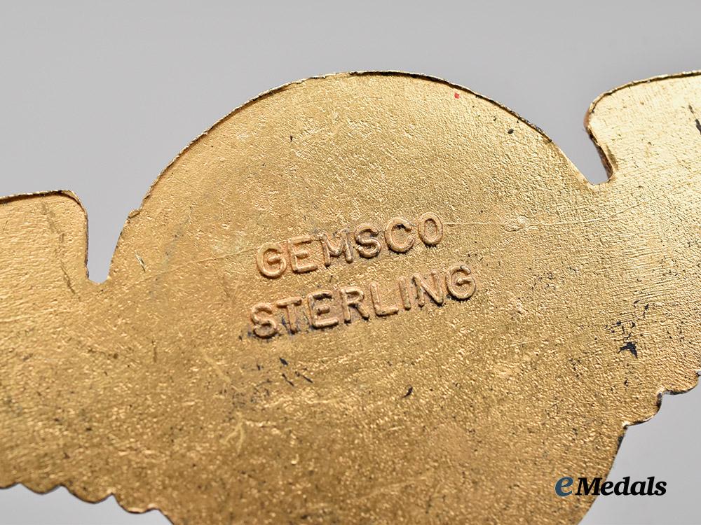 A Naval Observer Badge, in silver gilt, reverse marked GEMSCO STERLING, horizontal pin, measures 72.5 mm (w) x 20.3 mm (h), minor wear, in extremely fine condition.