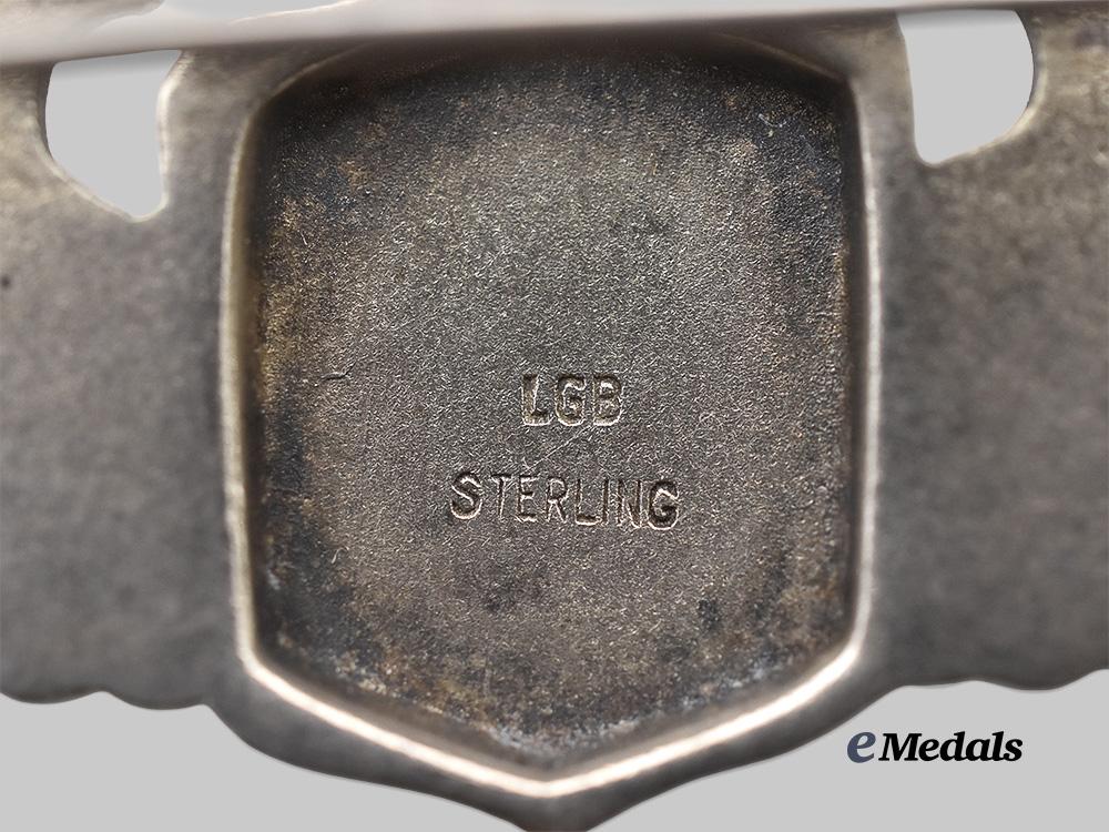 1. United States Army Air Force Pilot Badge: in sterling silver, maker marked "LGB" (L.G. Balfour Company) and marked "STERLING" on the reverse, measuring 76 mm (w) x 20.5 mm (h), horizontal pinback.