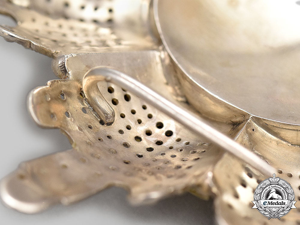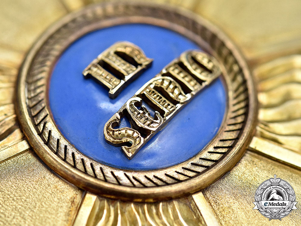 (Hausorden von der Goldenen Flamme). Instituted on 25 December 1757. A French manufactured eight-point star in silver with clusters of five faceted rays, the obverse medallion features a silver gilt Maltese cross with flames in each quadrant, the center presents a blue enamelled field with the motto IN SENIO (In Old Age), the reverse presents a single pin assembly with dual stays, measures 87.5mm (w) x 86.5mm (h), weighs 63.9 grams, a lovely star with intact enamels and very minimal wear, in near mint condition.