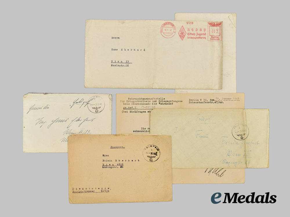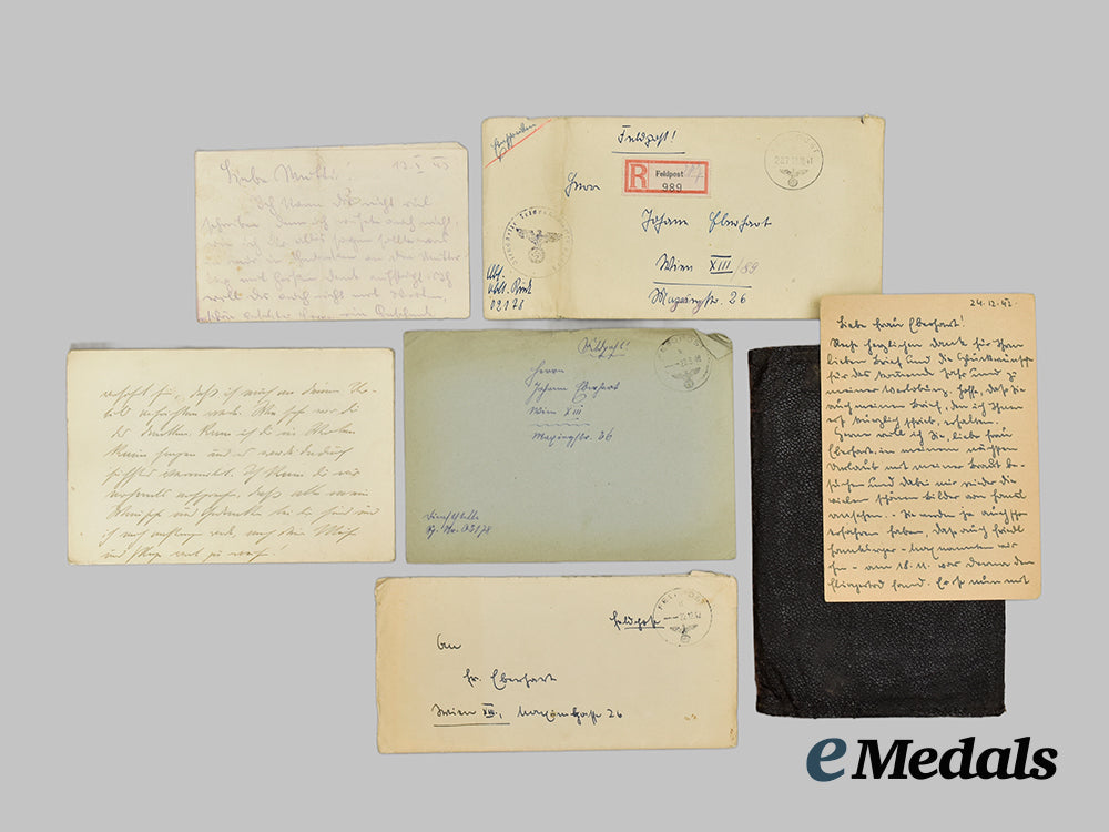 Germany, Army. A Casualty Grouping of Feldpost belonging to Wehrmacht Panzer Gunner Johann “Hans” Eberhart