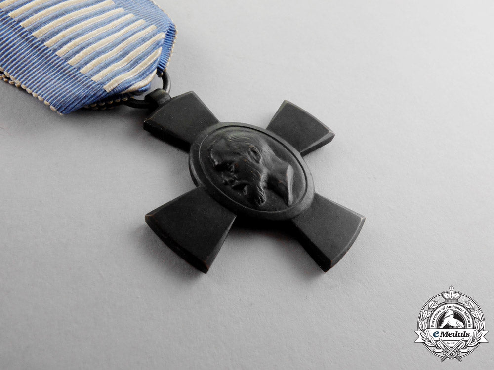 A lot of four Imperial Bavarian Commemorative medals, consisting of 1) A 1905-1912 issue Prinz Luiltpold medal in bronze (Prinzregent Luitpold Medaille in Bronze); a bronze cross; with its period original tri-fold ribbon; measuring 32.22 mm (w) x 43.89 mm (h); weighing 24.4 grams with its ribbon. 2) A 1913-1918 Issue Bavarin Miltiary Service Decoration 3rd Class for 9 Years of Service (Militär Dienstauszeichnung 3. Klasse für 9 Dienstjahre; a new-silver medallion; measuring 33.21 mm in diameter; weighing 17.3 grams with its ribbon. 3-4) Two 1916-1918 Issue King Ludwig Cross; a blackened bronze crosses; measuring 39.68 mm (w) x 45.69 mm (h) - weighing 18.3 grams with its ribbon and measuring 39.56 mm (w) x 45.64 mm (h) - weighing 23.8 grams with its ribbon; in overall very fine condition.