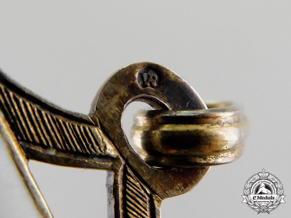 Of high quality Austrian manufacture in silver gilt with a white enameled Maltese cross, fleur-de-lys in each quadrant, centre with Initials of Francis I with green enameled laurels and blue enameled motto ring, reverse with silver gilt centre with institution date in black enameling, hand detailed suspension arms with elongated commander ribbon loop, integral ring marked VR denoting Austrian silver inventory mark of items manufactured between 1810-1824, measuring 39 mm (w) x 46 mm (h - inclusive of integral ring), without crown, with enamel flaking, otherwise very fine.
