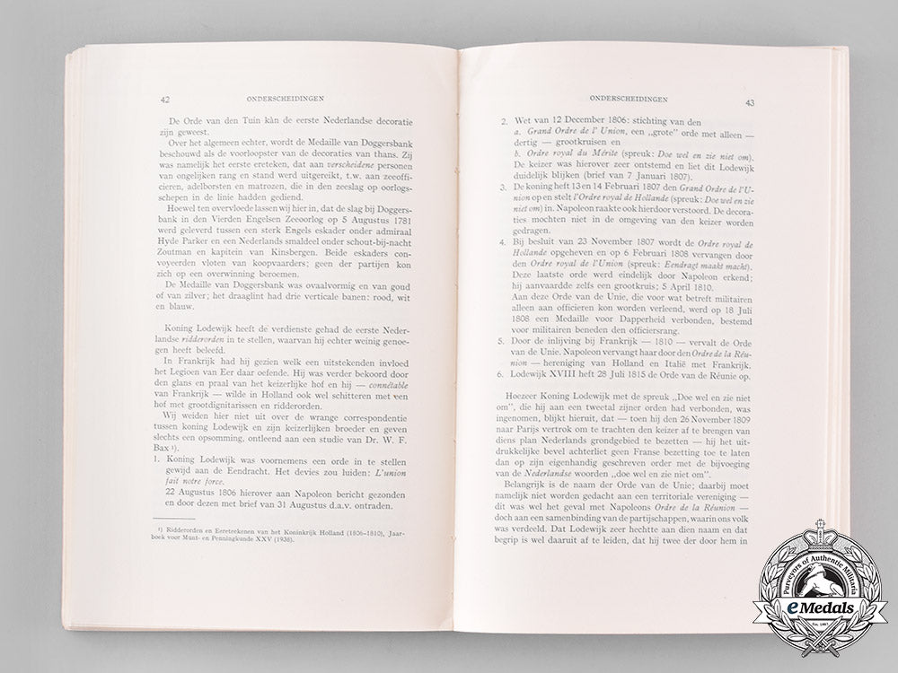 Netherlands, Kingdom. Beknopte Geschiedenis Der Nederlandse Ridderorden, By P.j. D’artillac Brill, 1951