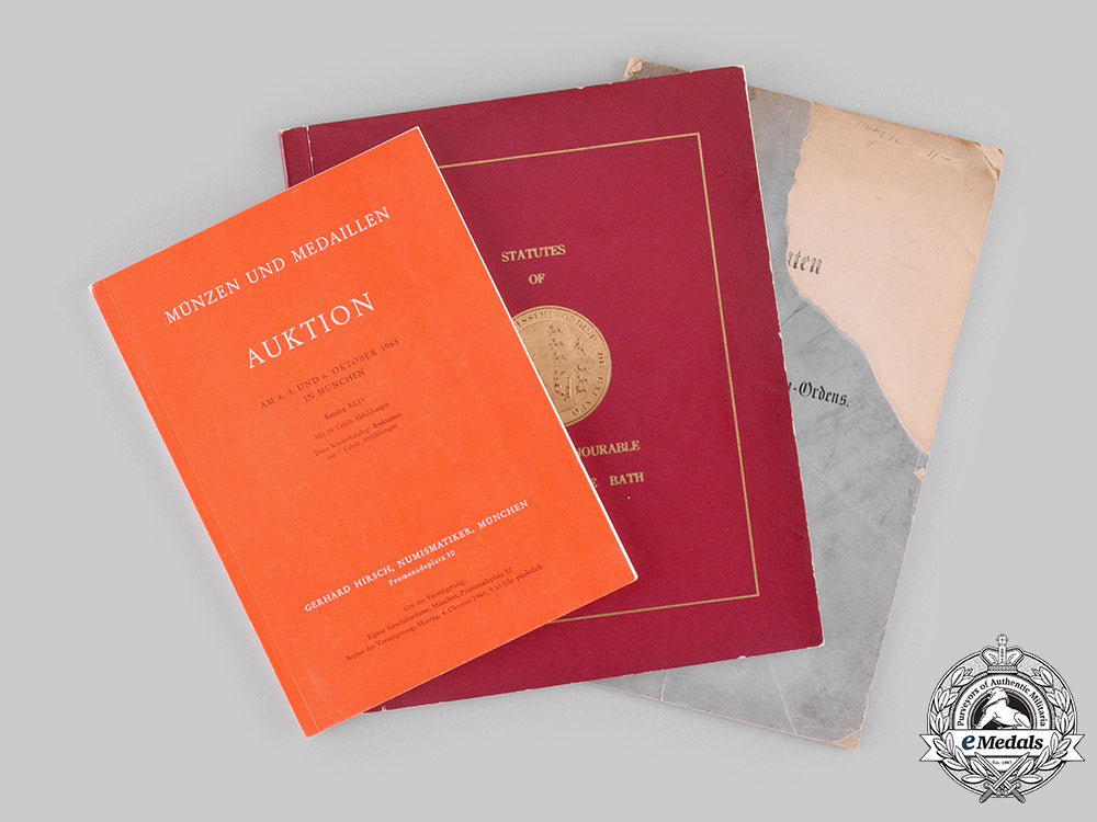 United Kingdom: Statutes of the Most Honourable Order of the Bath 1948, published by Harrison & Sons Ltd., dated August 1953, containing 24 pages of text printed in black ink on a thick off-white paper stock, followed by 5 pages of photos printed in black ink on a coated white paper stock and illustrating the Knight Grand Cross Star, Badge & Collar, the Knight Commander Star and Badge, and the Companion Badge for both the Civil and Military Divisions of the Order, plus cover in maroon ink with the text and the seal of the order in gold-coloured ink and embossed, perfect bound, measuring 247 mm (w) x 310 mm (h);