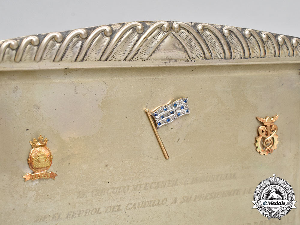Spain, Spanish State. A Commemorative Plate To Francisco Franco From The Merchants And Industrialists Circle Of Ferrol