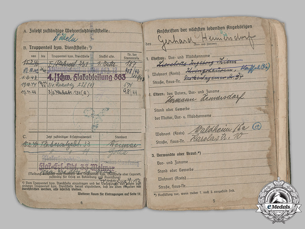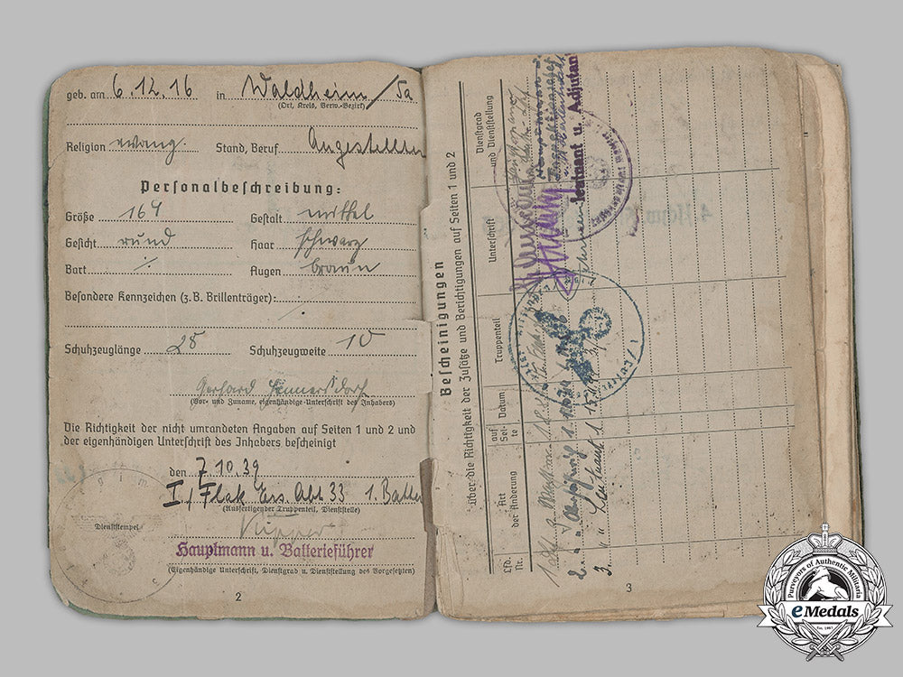 Germany, Luftwaffe. A Soldbuch To Flak Leutnant Gerhard Hennesdorf, 1939