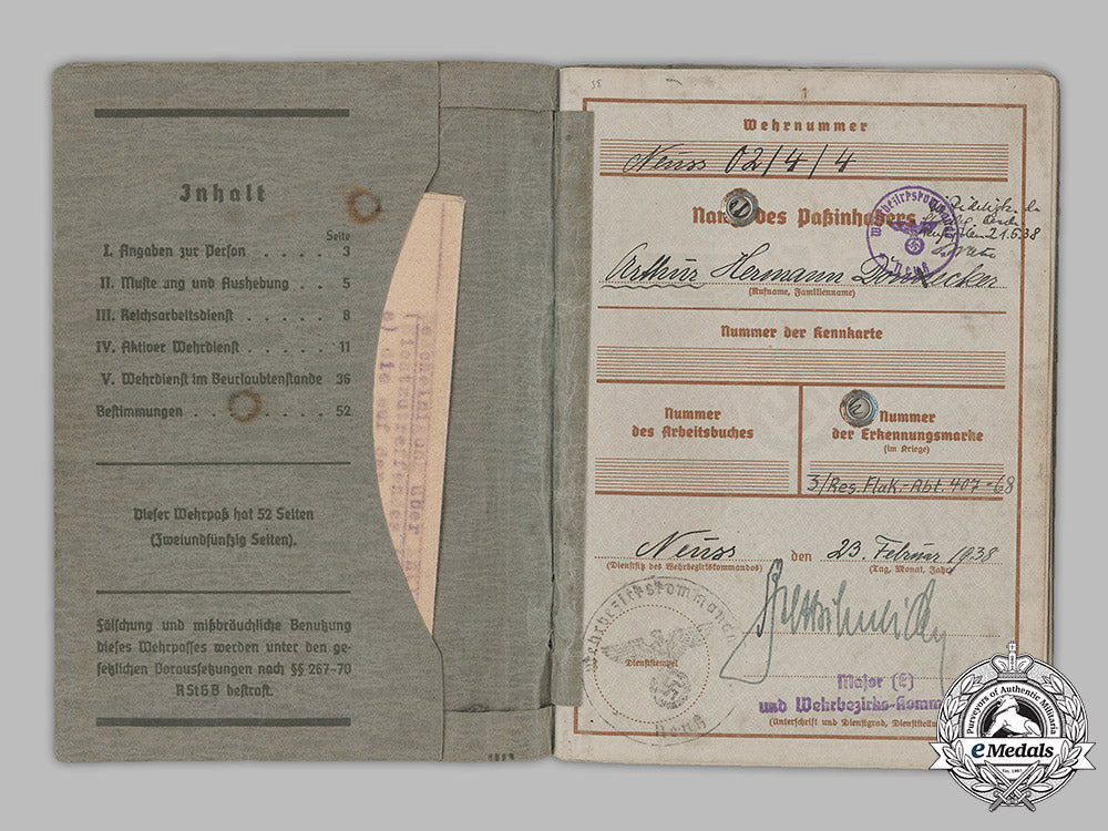 Germany, Luftwaffe. A Wehrpaß To Artillery Gunner, Heavy Flak Battalion 647