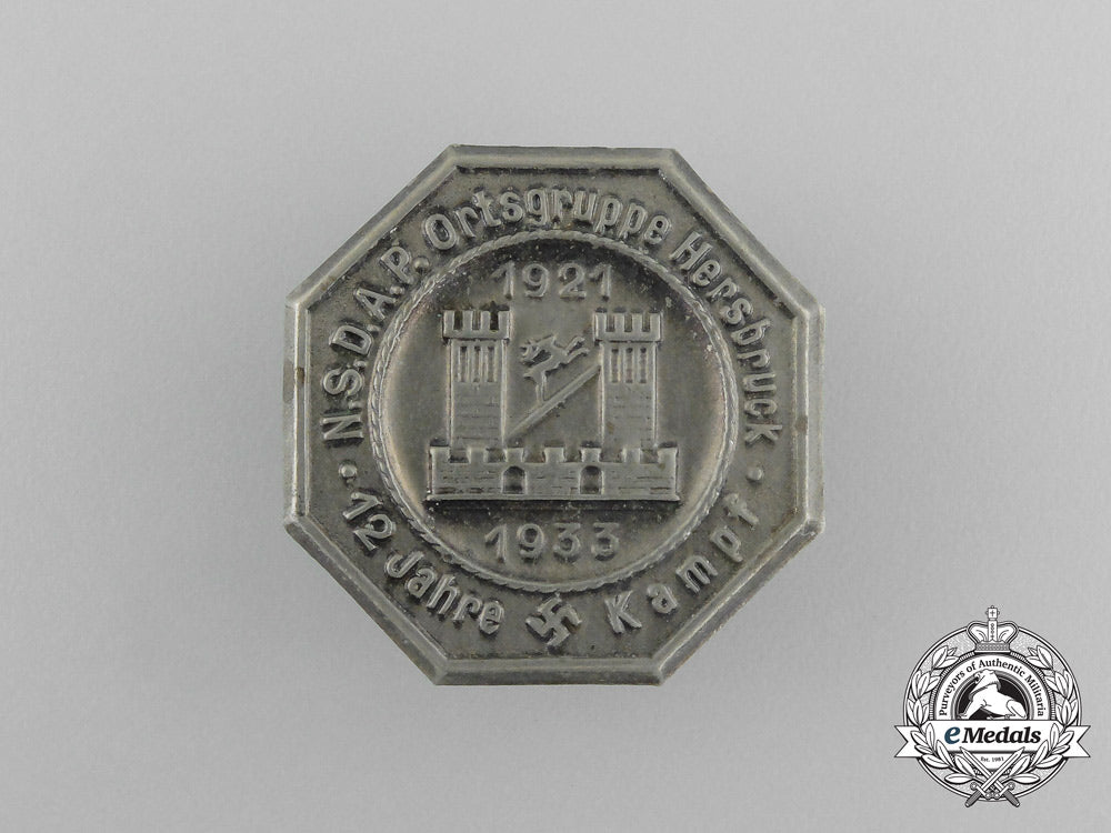A 1933 12 Years Of Nsdap In The Hersbruck Region Badge By C. Balmberger
