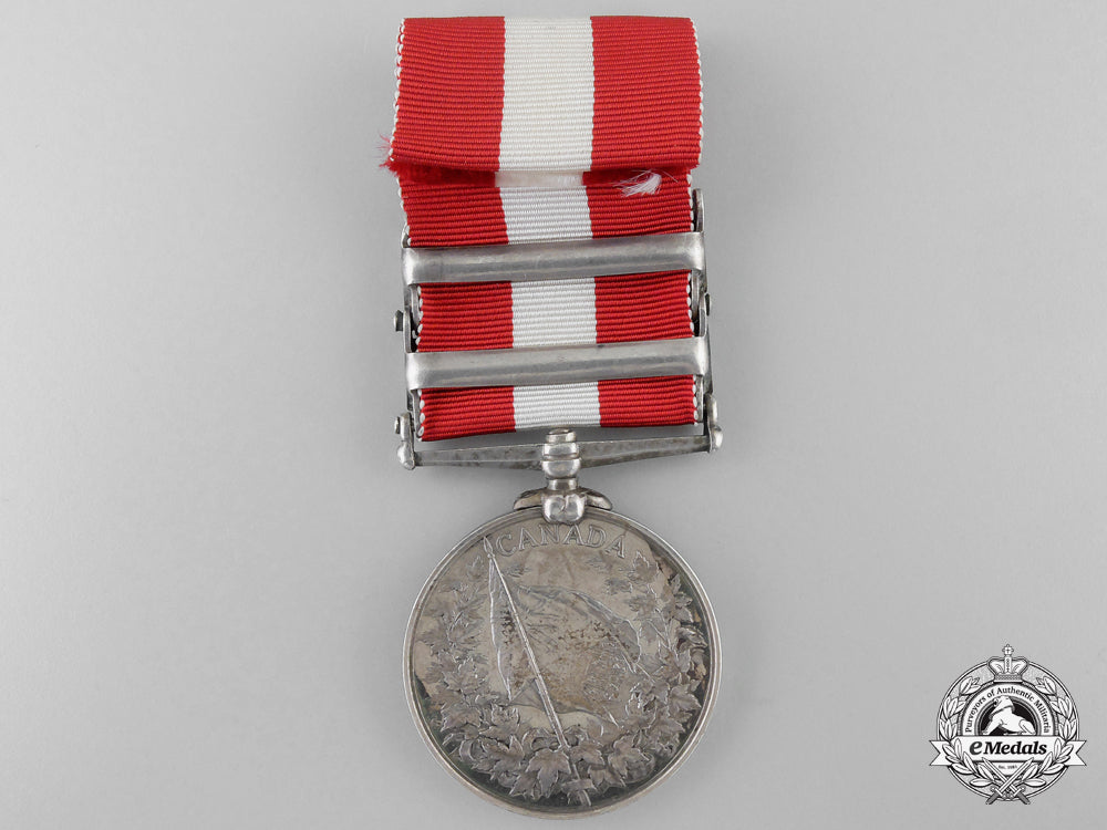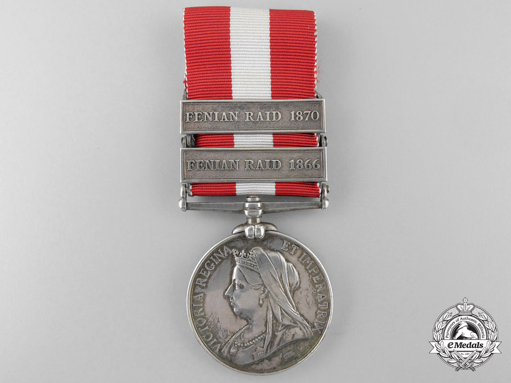 FENIAN RAID 1866, FENIAN RAID 1870 (Cpl. D. Bowick. 8th. Bn.). Naming is officially impressed. Very light contact, extremely fine.