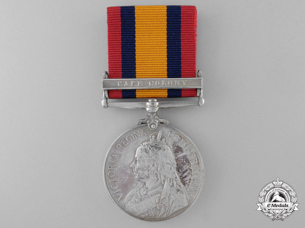 CAPE COLONY (38951 TPR: J.H.S. HICKMAN. CANDN: SCTS:). Naming is officially impressed. Very light contact, extremely fine. Accompanied by copies of his Attestation Paper, Discharge Certificate and two Medal Rolls (the first indicating that Hickman was entitled to the Queen's South Africa Medal with three clasps: Cape Colony, Orange Free State and Transvaal, dated January 14, 1903 at Cape Town; the second indicating that Hickman was entitled to the Queen's South Africa Medal with South Africa 1902 clasp, dated October 12, 1904 at Cape Town).
