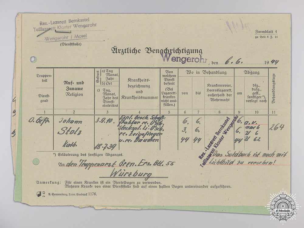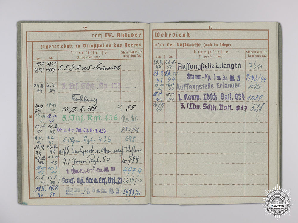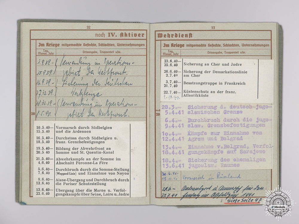 A Wehrpass To The 105Th Infantry Regiment; Invasion Of France