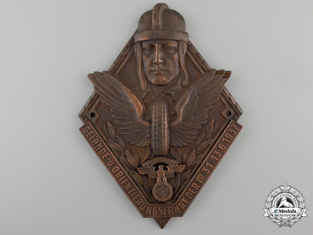 An 1937 Nskk Terrain Orientation Motorcycle Plaque
