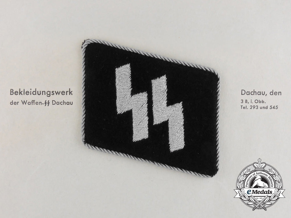 An Officer's Ss Collar Tab And Dachau Clothing Work Factory Letter