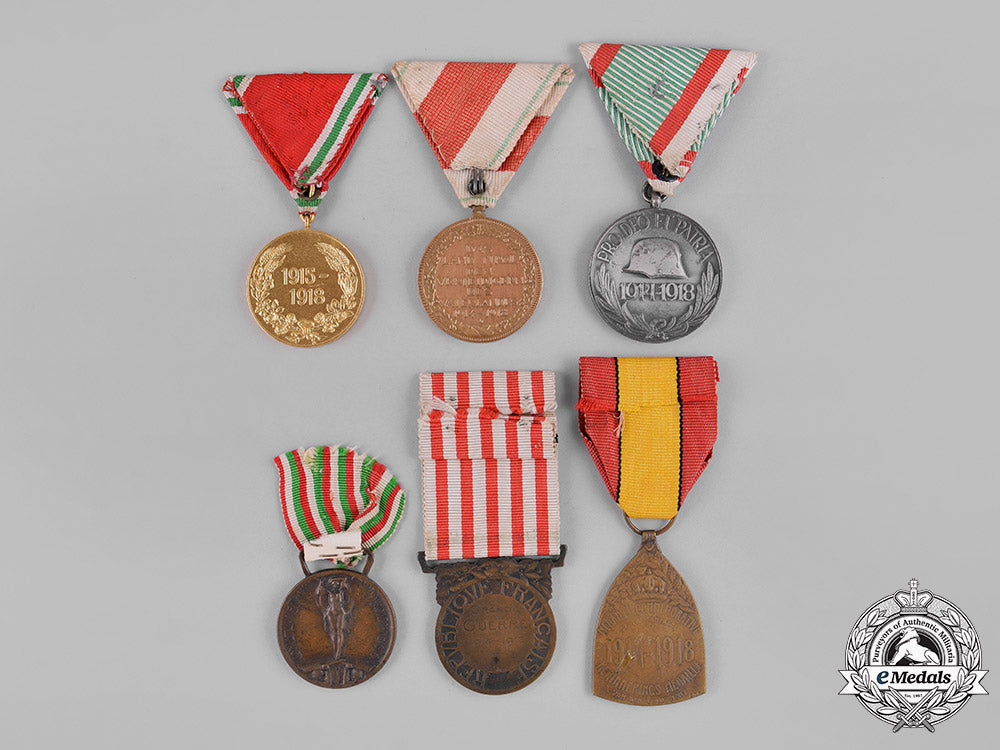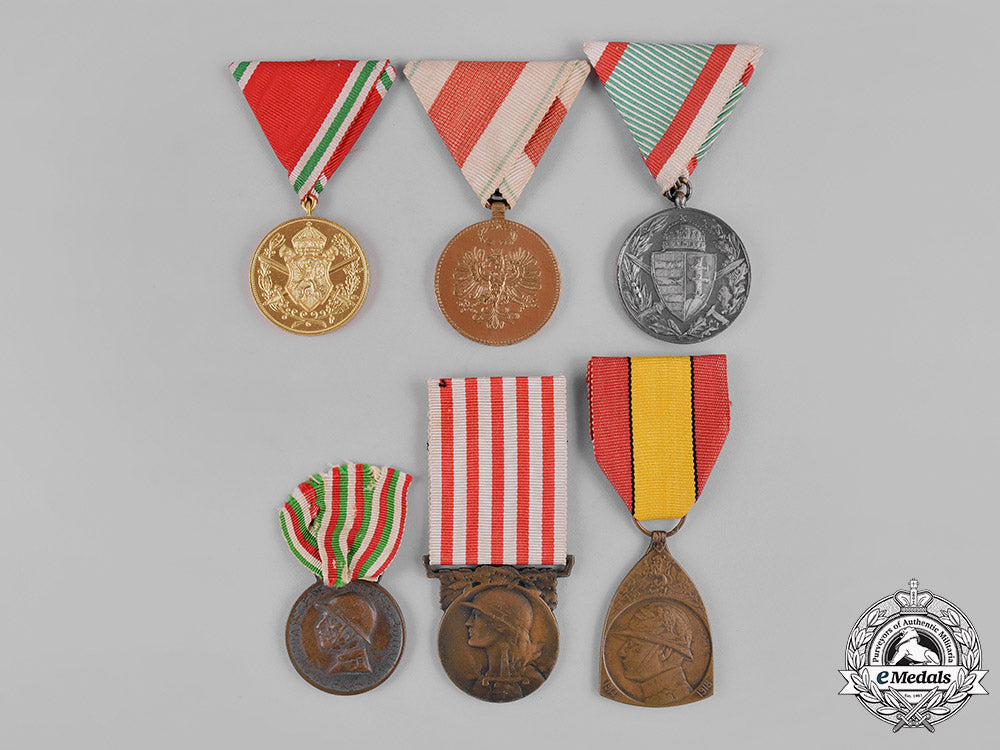 Austria, Belgium, Bulgaria, France, Hungary, Italy. A Lot Of Six First War Medals