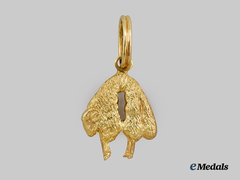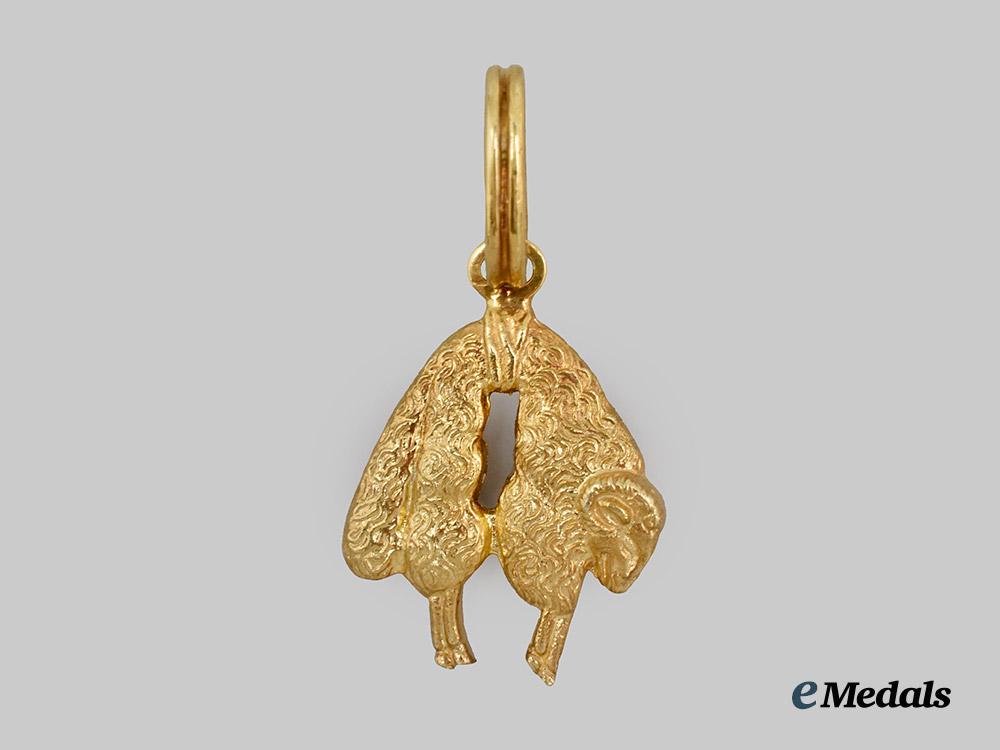 (Ritterorden vom Goldenen Vlies). Instituted January 10th, 1429. (c.1980). Constructed of gilded silver, consisting of a double-sided depicting of the Golden Fleece of Colchis executed in fine detail, topped by a suspension ring and suspended from a replacement full length red neck ribbon, unmarked but typical of Rothe manufacture, measuring 27.5 mm (w) x 38.0 mm (h - inclusive of integral ring), weighing 20.4 grams, a high-quality collector’s exhibition example in extremely fine condition.
