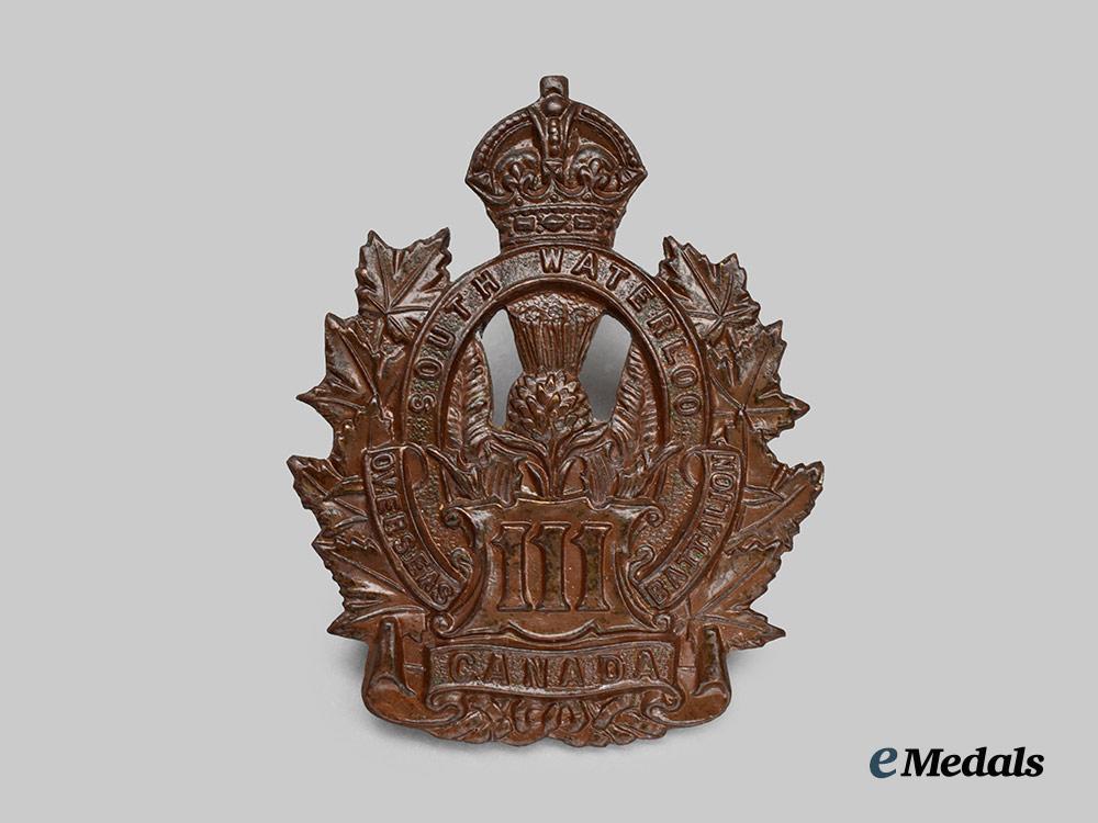 Canada, CEF. A 111th Infantry Battalion "South Waterloo Battalion" Cap Badge, Type I with "South Waterloo"