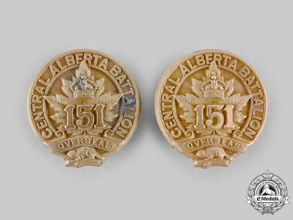 Canada, Cef. A 151St Infantry Battalion "151St Central Alberta Battalion" Officer's Collar Badge Pair, Type Ii Without "Canada"