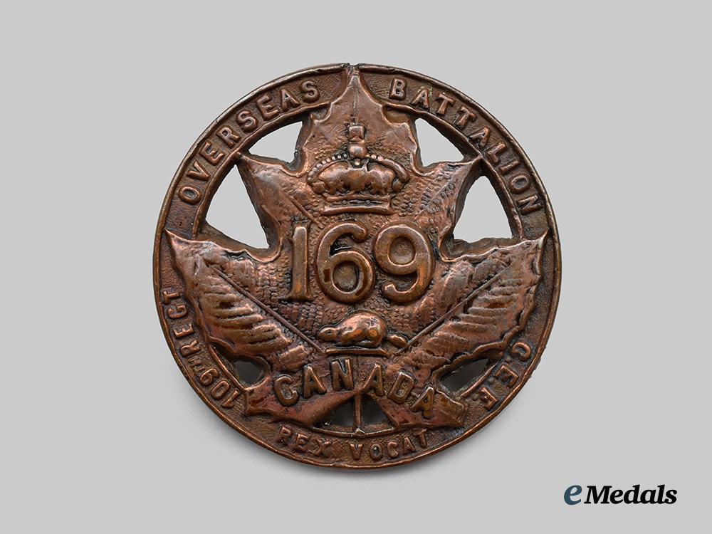 Canada, CEF. A 169th Infantry Battalion "109th Regiment" Cap Badge, Type I with Maple Leaf on a Voided Circle